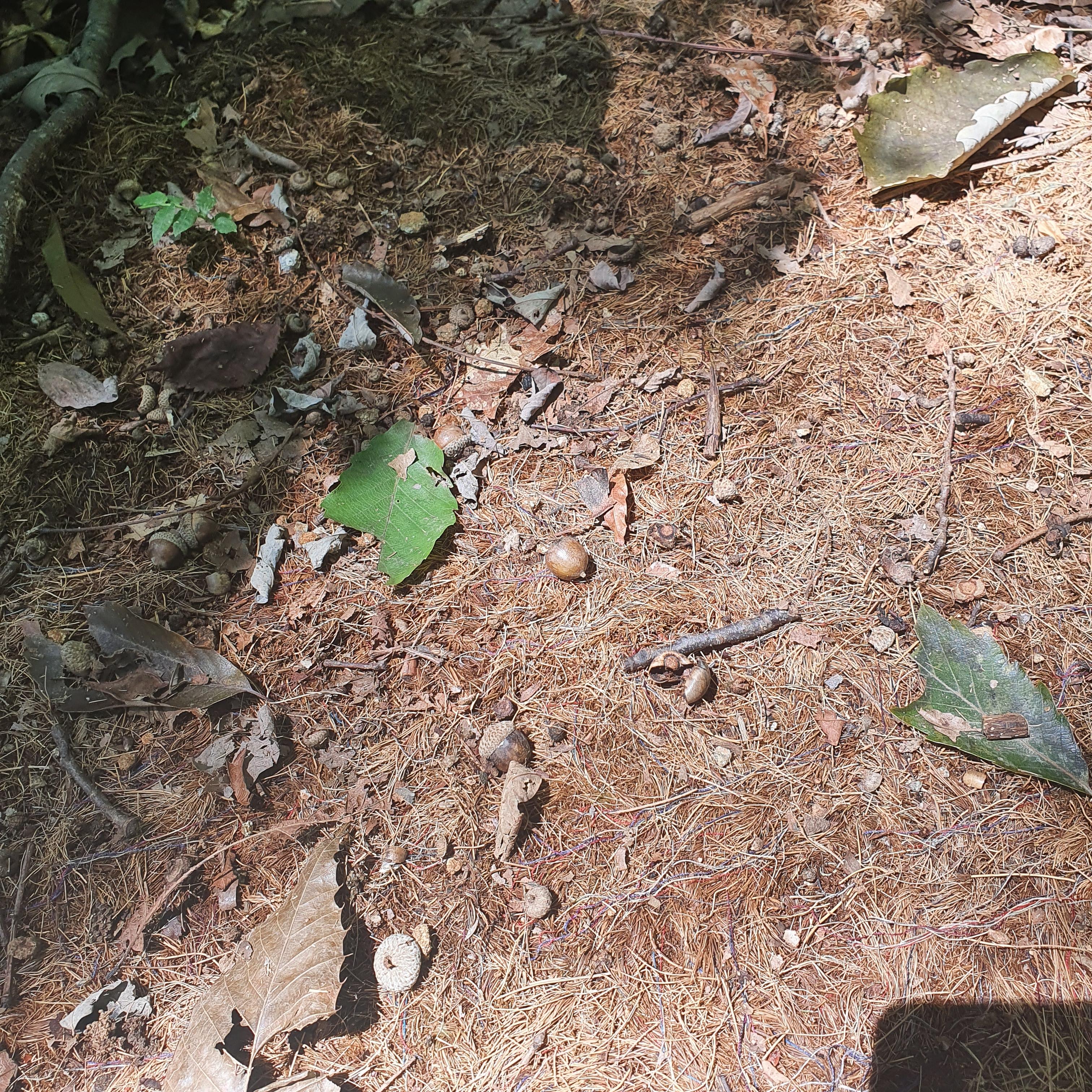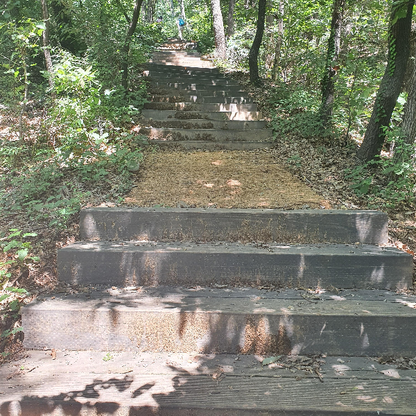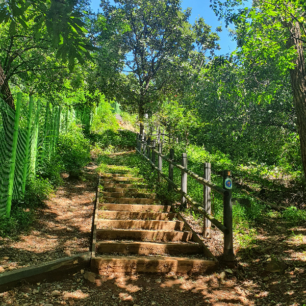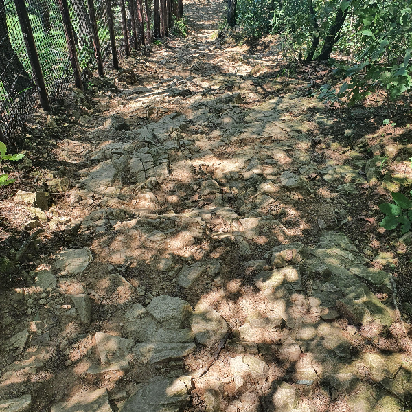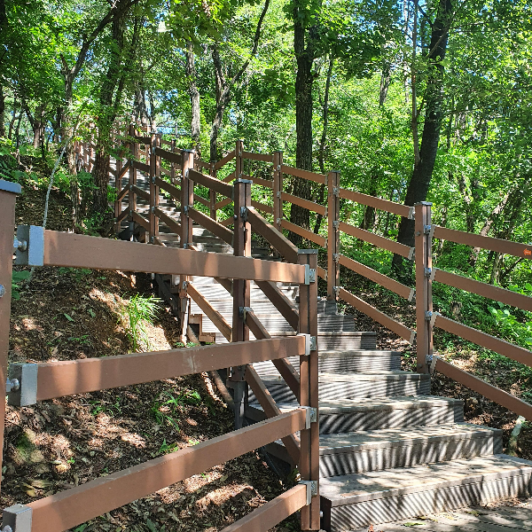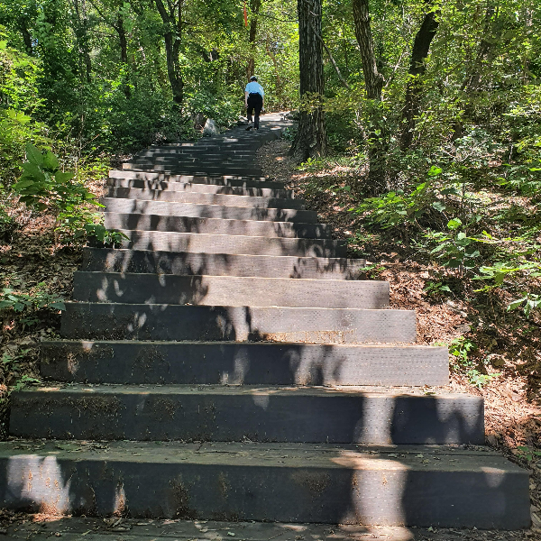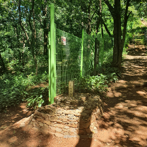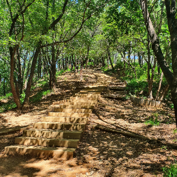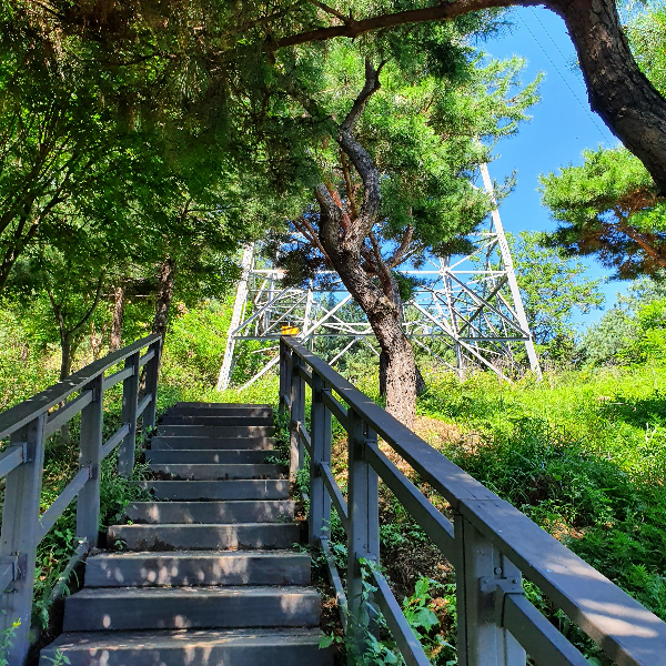 높고 가파른 계단을 마주하게 되는데, 개인적으로 이곳이 너무 힘들어서 계단을 오르는 중간중간에 몇 번이나 쉬어가면서 올라갔다. 그러던 중 바닥에 떨어져 있는 도토리들을 볼 수 있었는데, 문득 가을이 오고 있다는 것을 깨달았다. 이 근방은 과거 군사지역이었던 것 같았다. 군사시설 관련 흔적들도 많이 보였다.
