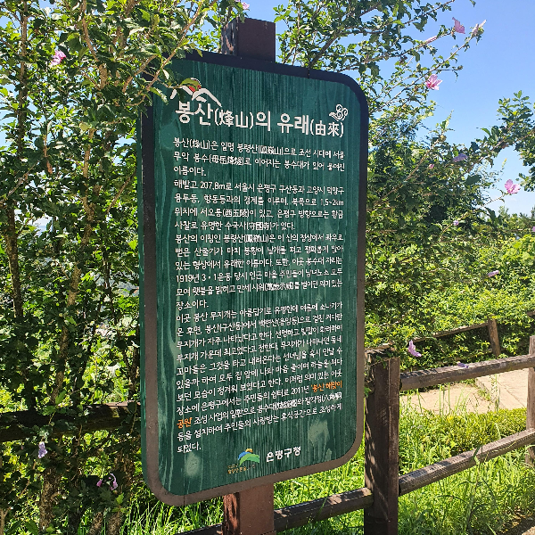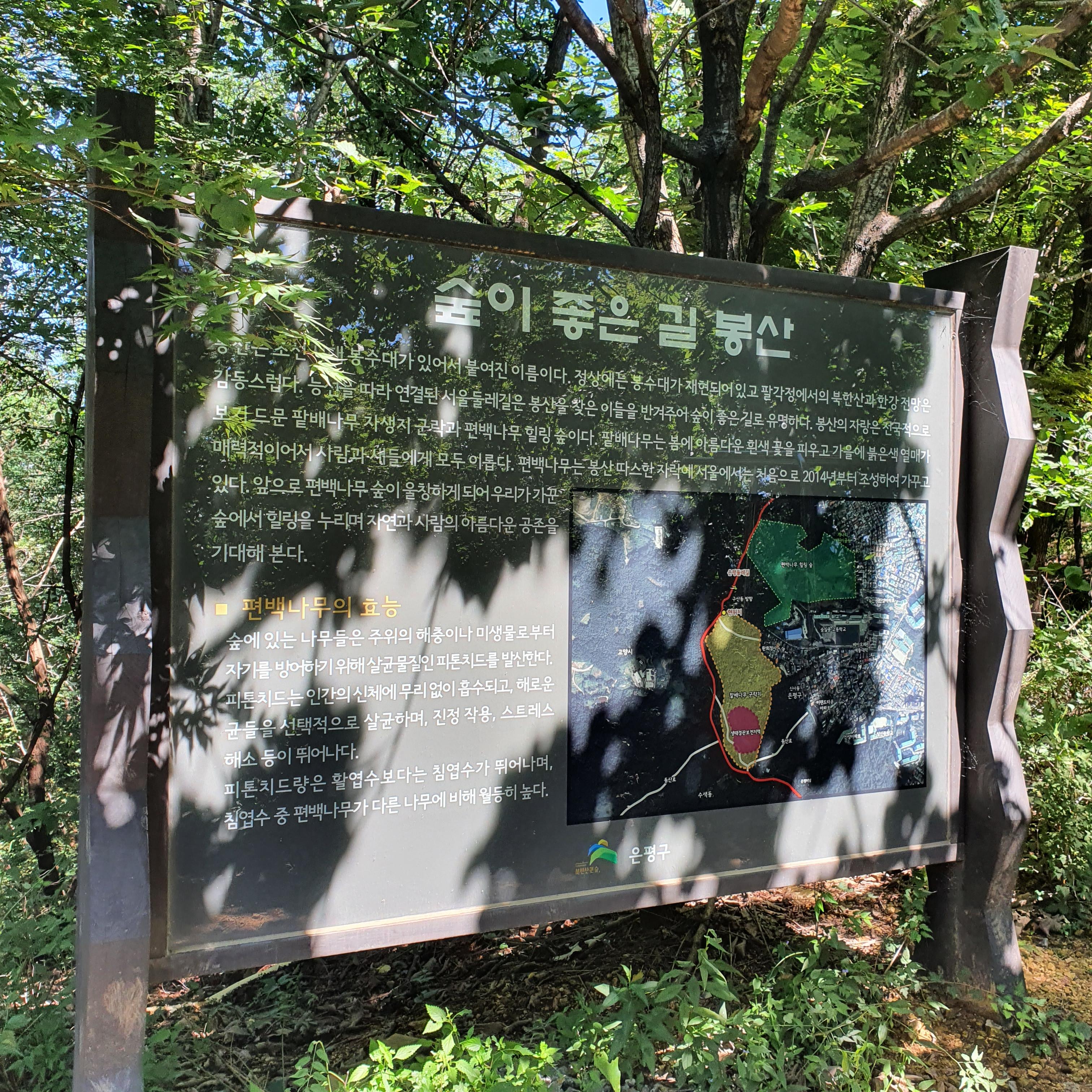서울 둘레길 7-2코스. 무더위에 이어 태풍과 홍수로 인해 둘레길을 오랜만에 나섰다. 봉산 앵봉상은 서울과 경기도 고양의 경계에 있는 산이다.