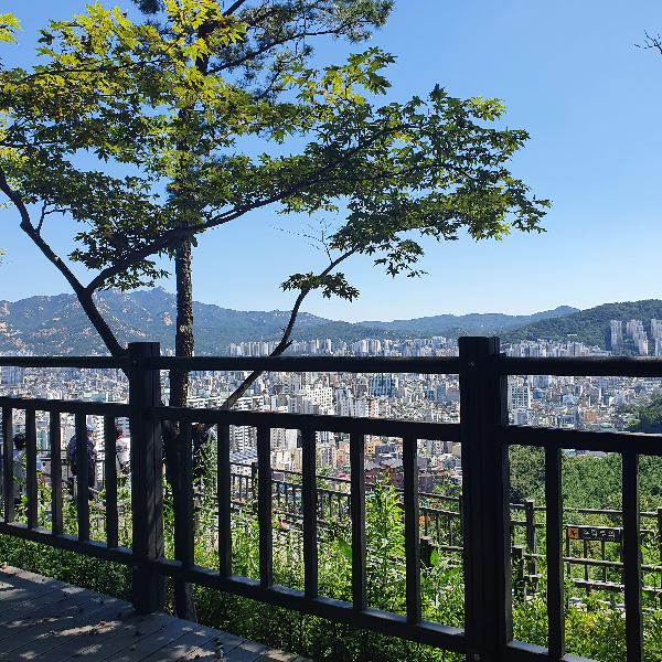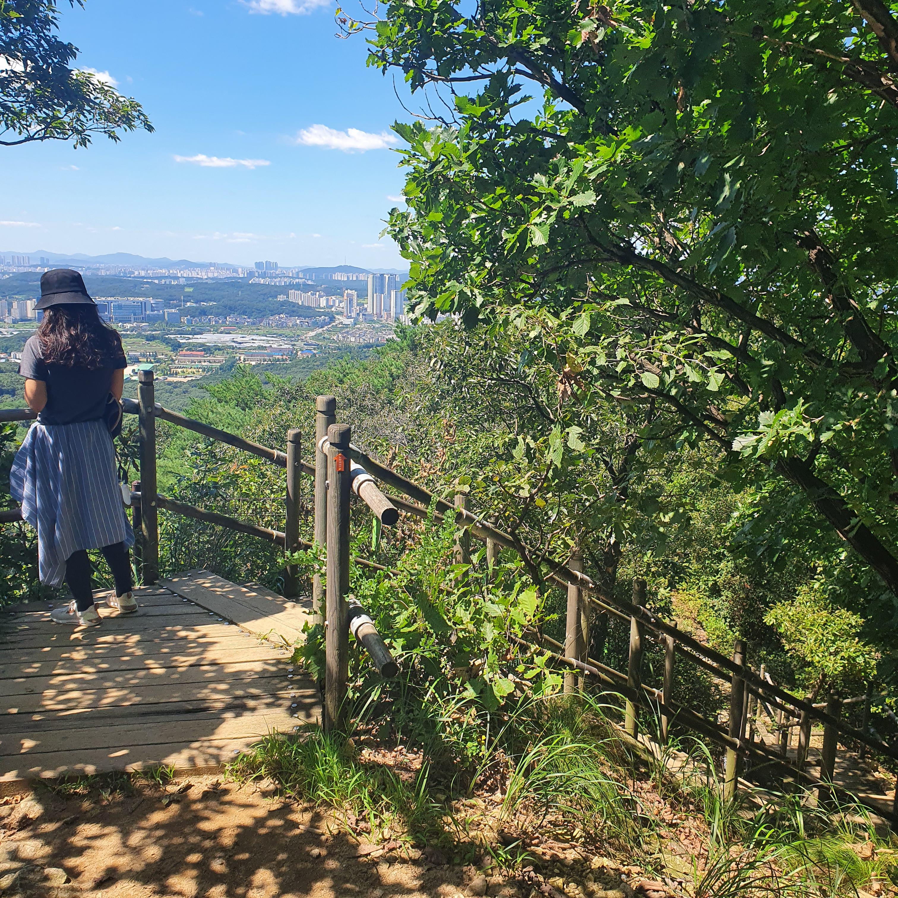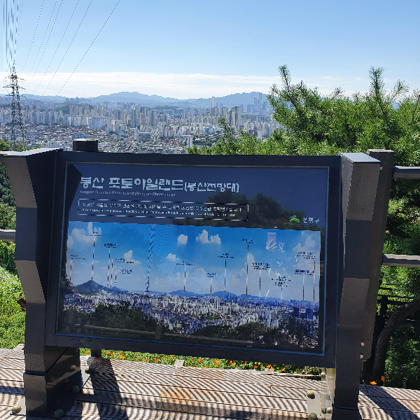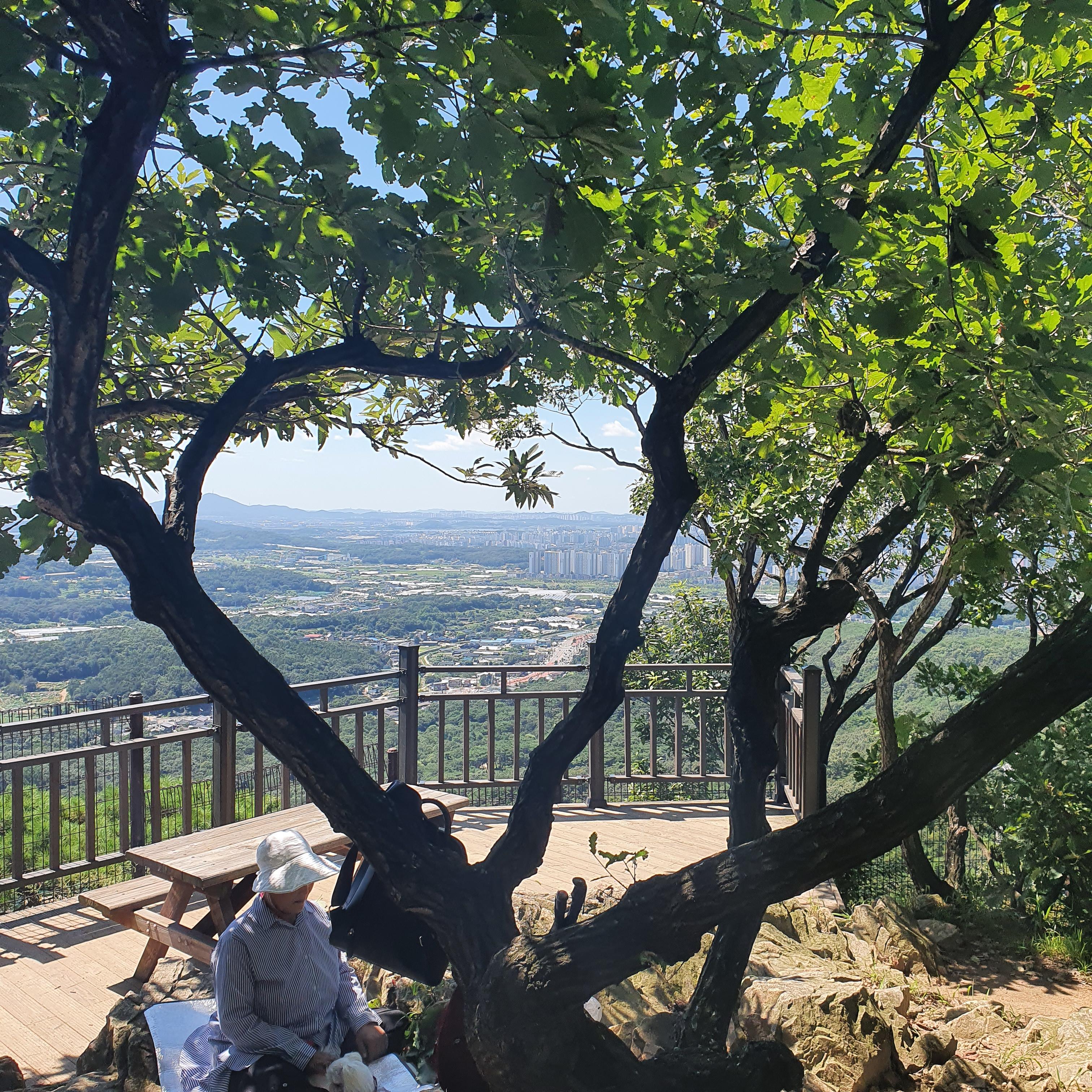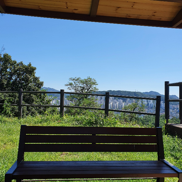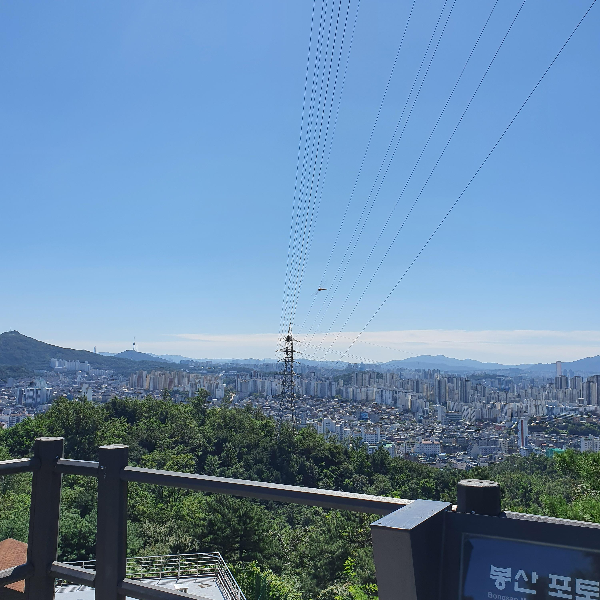 조금 걸어 올라가면 봉산 전망대가 나온다. 계단을 한참 올라왔기 때문에 이곳에서 잠시 쉬어주었다. 날이 맑아서 멀리 있는 산도 잘 보였다.