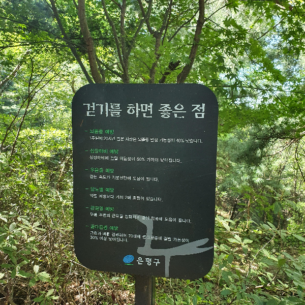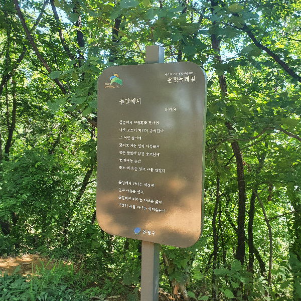서울 둘레길 7-2코스는 은평 둘레길 1코스와 2코스와 길이 겹쳤는데, 이곳을 활성화하기 위한 노력이 엿보였다. 둘레길 곳곳에 운동기구들과 쉴 수 있는 정자들이 놓여 있었고, 올바르게 걷는 법이나 걷기의 중요성에 대한 안내판, 시가 적혀있는 안내판도 만날 수 있었다.